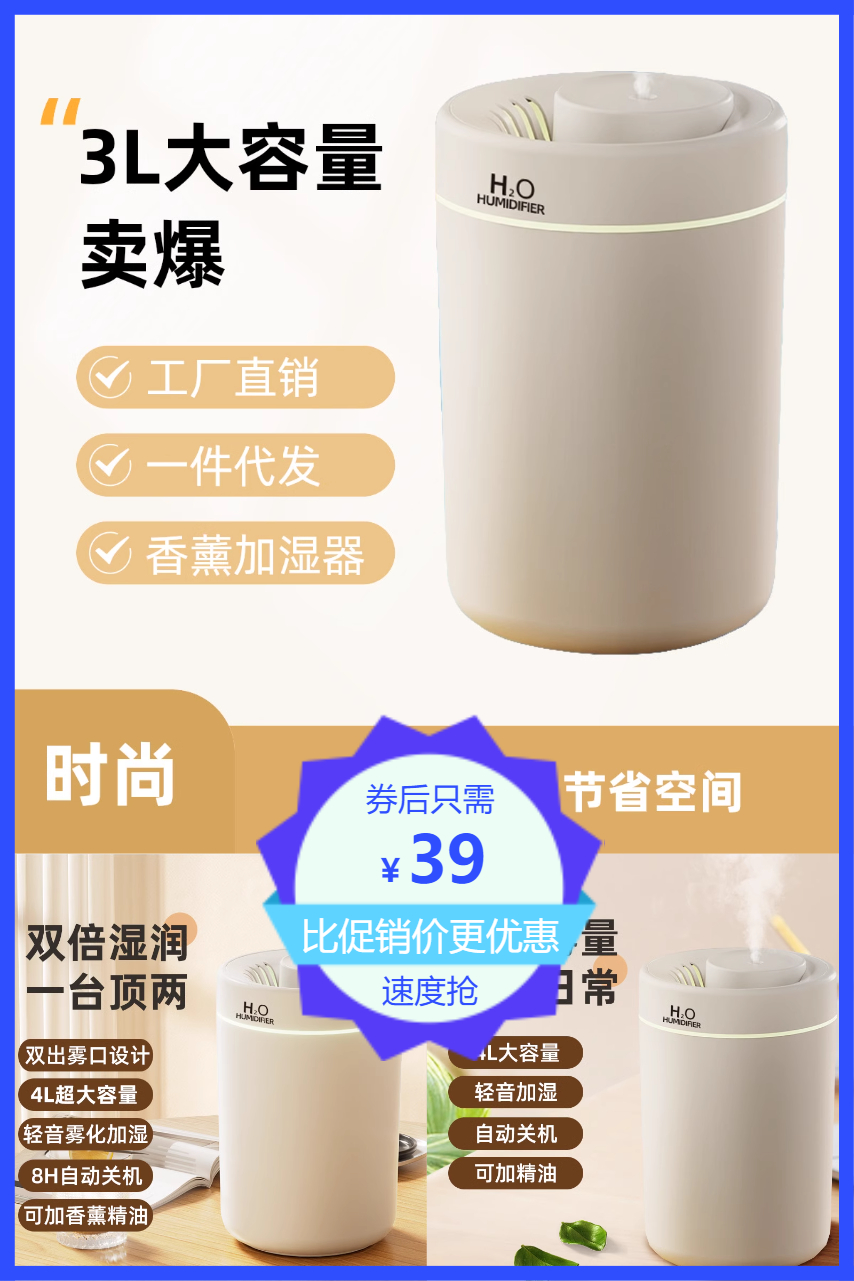 静音大烟雾,七彩氛围灯,防干烧保护,细腻水雾,持久保持湿润,比面膜更补水!