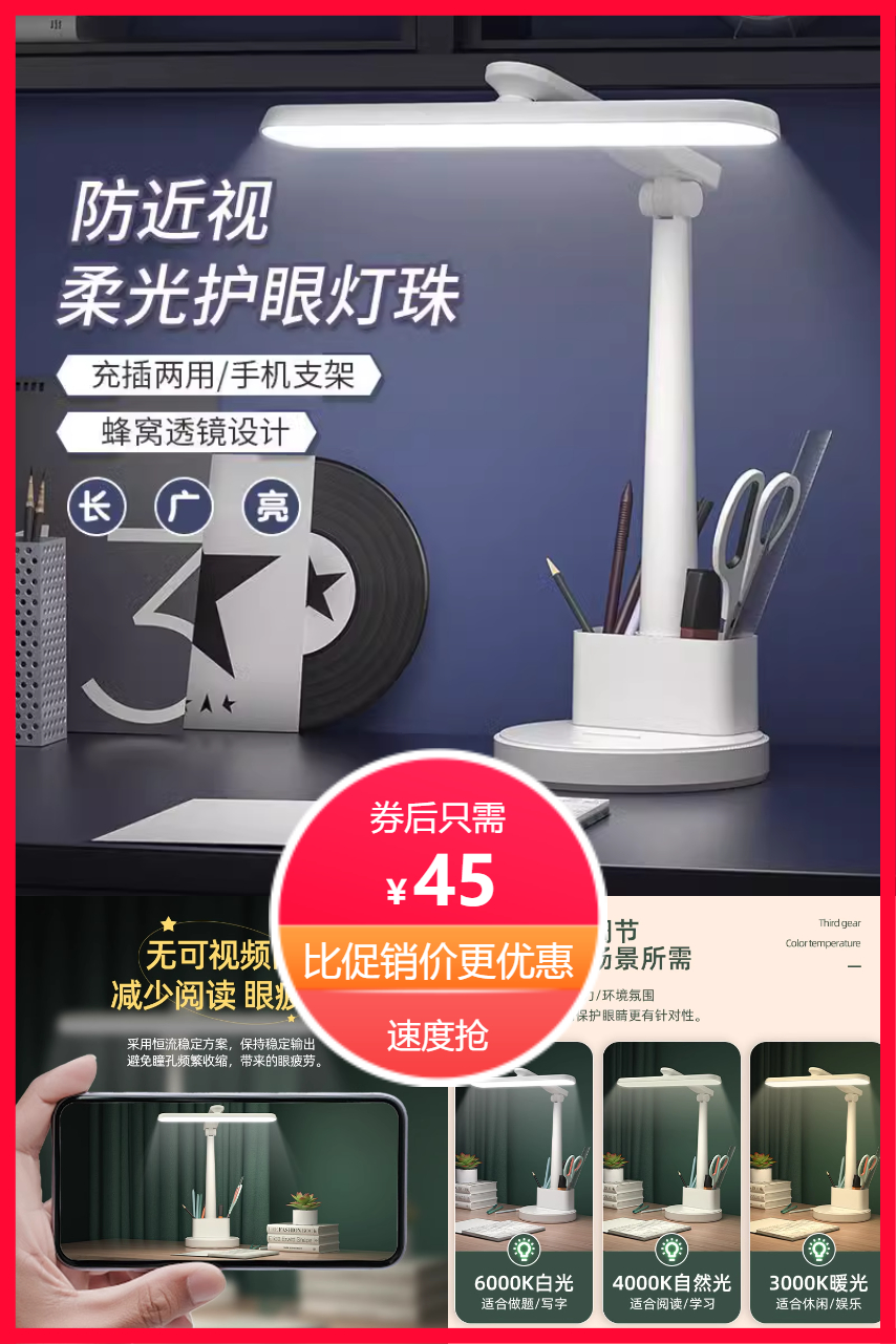 学生护眼小台灯可充电插电两用款,国家AA级护眼台灯,专为儿童学习设计,防蓝光,无频闪,智能时钟,震动感应,触控调节等多项功能,护眼的同时,更易操作,照亮每一处小细节。