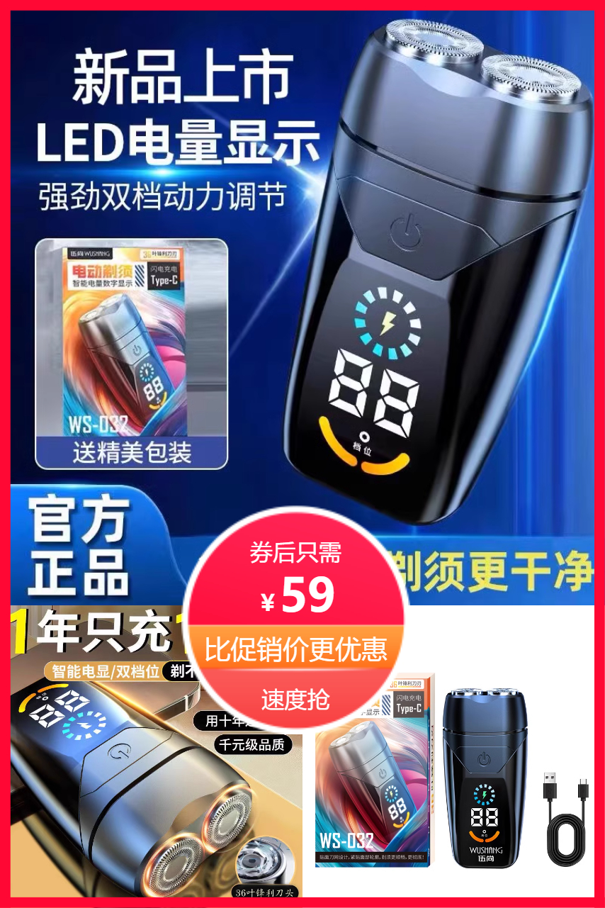 | 剃净度 | 98.7%残留<0.1mm | 89.2%残留0.3-0.5mm |