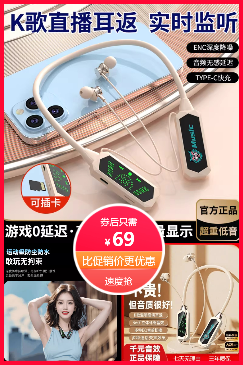 专为运动场景打造:跑步、健身、骑行时狂甩不掉;支持K歌模式,直播、录音、KTV场景音质清晰无延迟;通勤、办公时超长续航满足全天需求。
