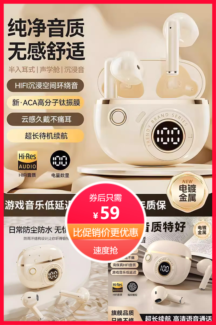 音质**+降噪功能+高颜值!!超长续航!运动听歌两不误!关键适合直播使用!!