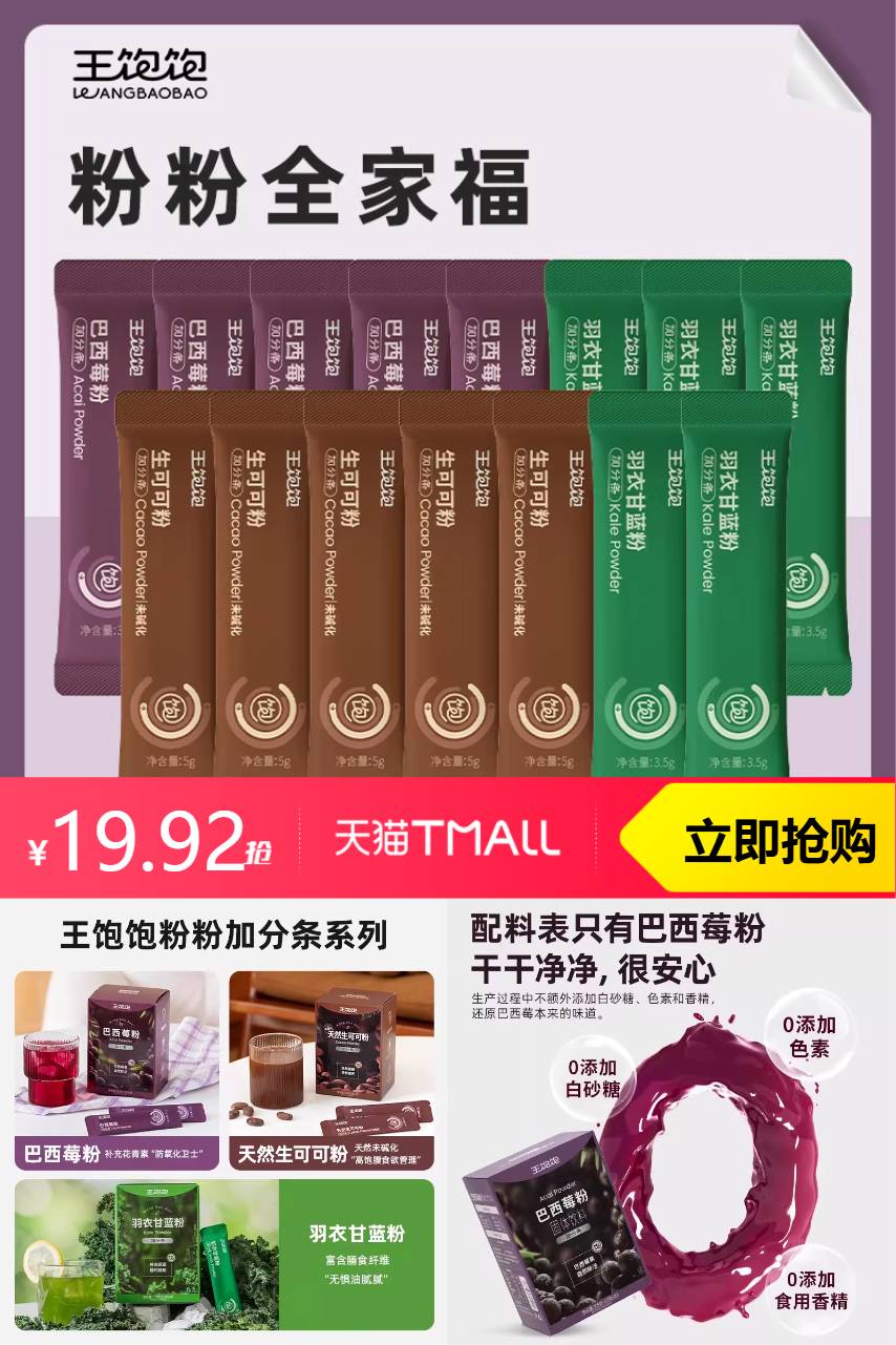 产品详情:王饱饱巴西莓粉/生可可粉/羽衣甘蓝粉(任选3件)