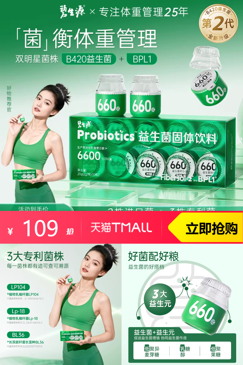 看菌株编号(如B420、BPL1)、活菌数量(≥100亿CFU)、存活技术(冻干优先)、是否含益生元。碧生源这款完美符合优质益生菌标准,体重管理+肠道呵护二合一,是女性健康投资的明智之选!