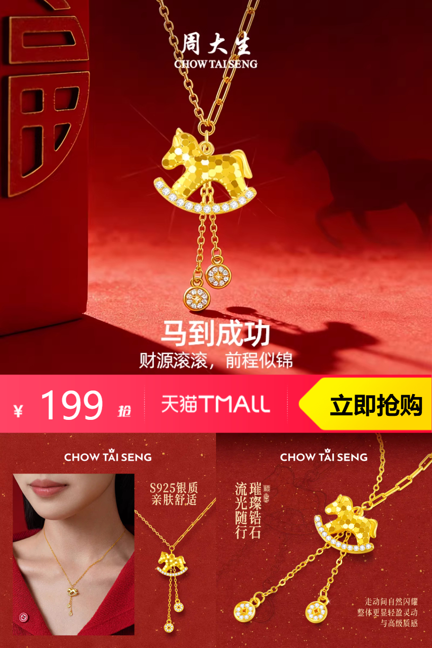 | 对比项 | 周大生纯银生肖马项链 | 普通合金项链 |