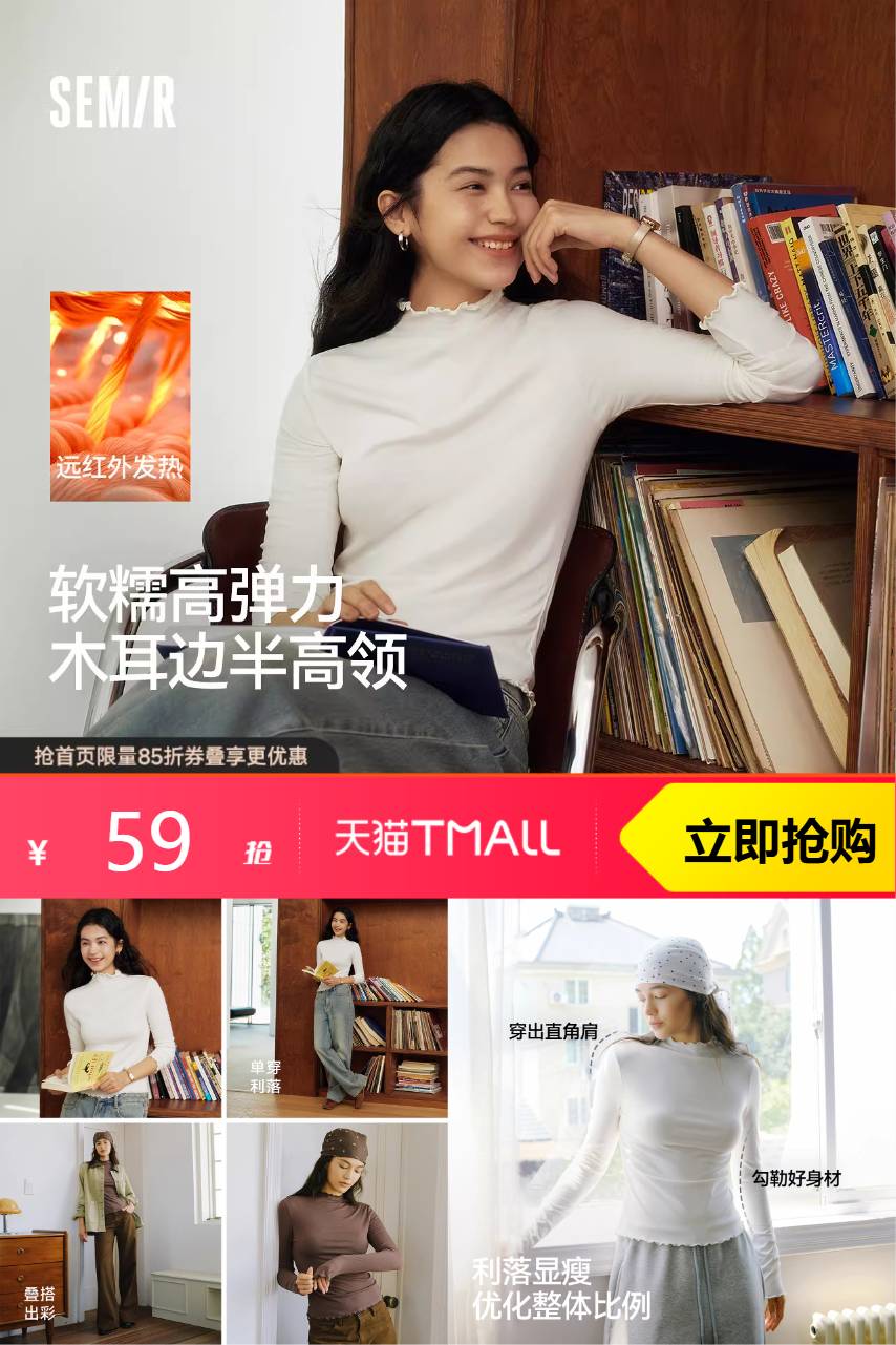 2、消费券抵扣 到手41】森马家的这款长袖T恤女款,半高领设计简直太赞了! 紧身打底衫的版型,无论是单穿还是作为内搭,都能完美展现你的身材曲线。