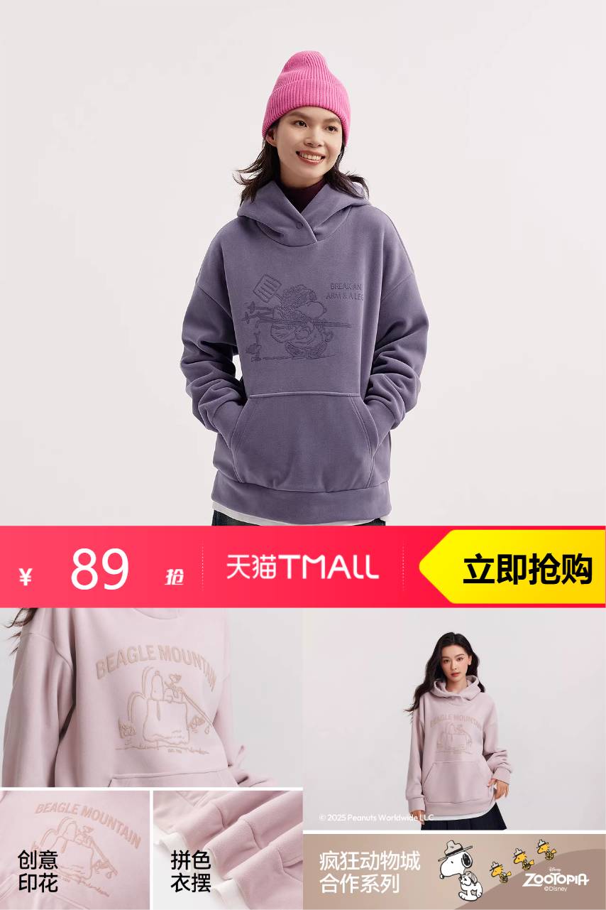 3、消费券抵扣 到手62】这款森马史努比系列卫衣采用中长款oversize版型,宽松舒适,适合秋冬季节穿搭。经典IP图案点缀,增添趣味与潮流感,轻松打造休闲随性的日常造型。面料柔软亲肤,兼顾保暖性与透气性,满足多种场合穿着需求。