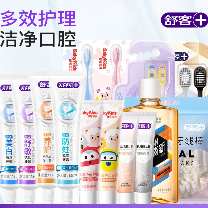 【59任选6件】舒客牙膏美白护龈清新漱口牙刷牙线棒官方旗舰F