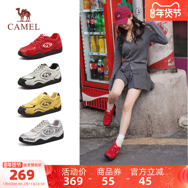 骆驼月牙德训鞋女鞋2025秋季新款运动鞋女红色板鞋复古休闲芭蕾鞋