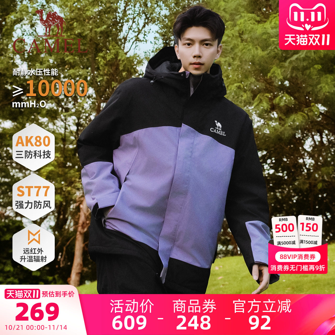 骆驼AK80硬壳防水棉服:暴雨级防护,冬季出行新标杆